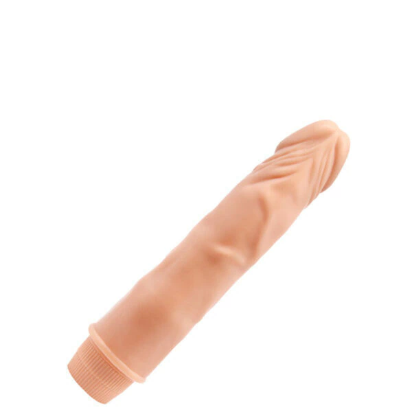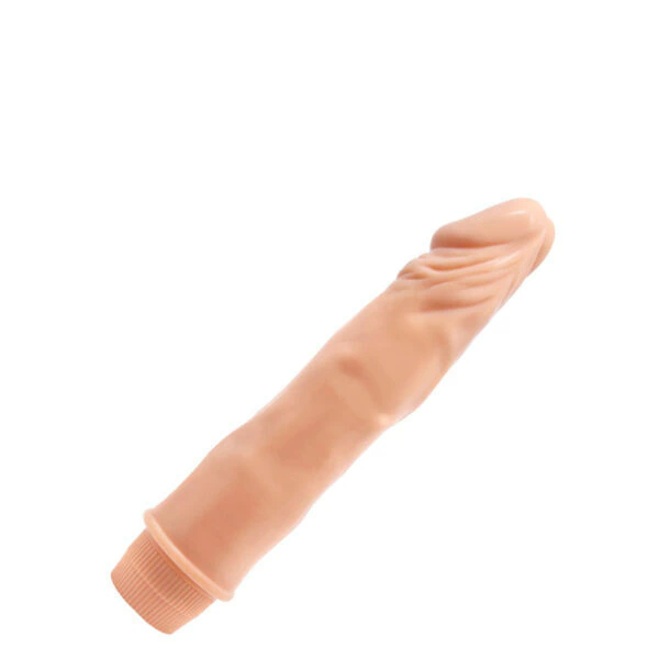 Pênis realístico com glande saliente e veias. Possui vibração multivelocidade.